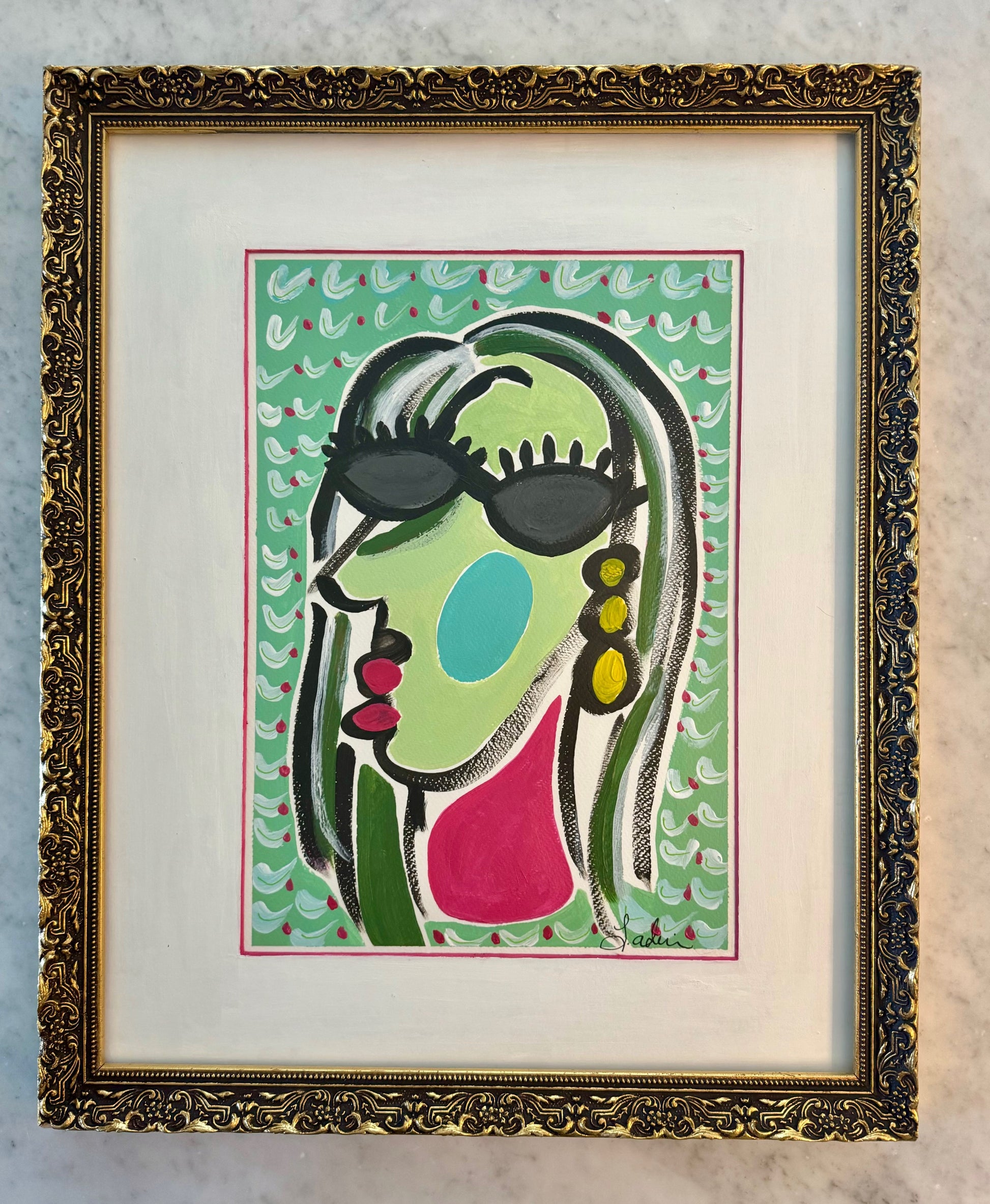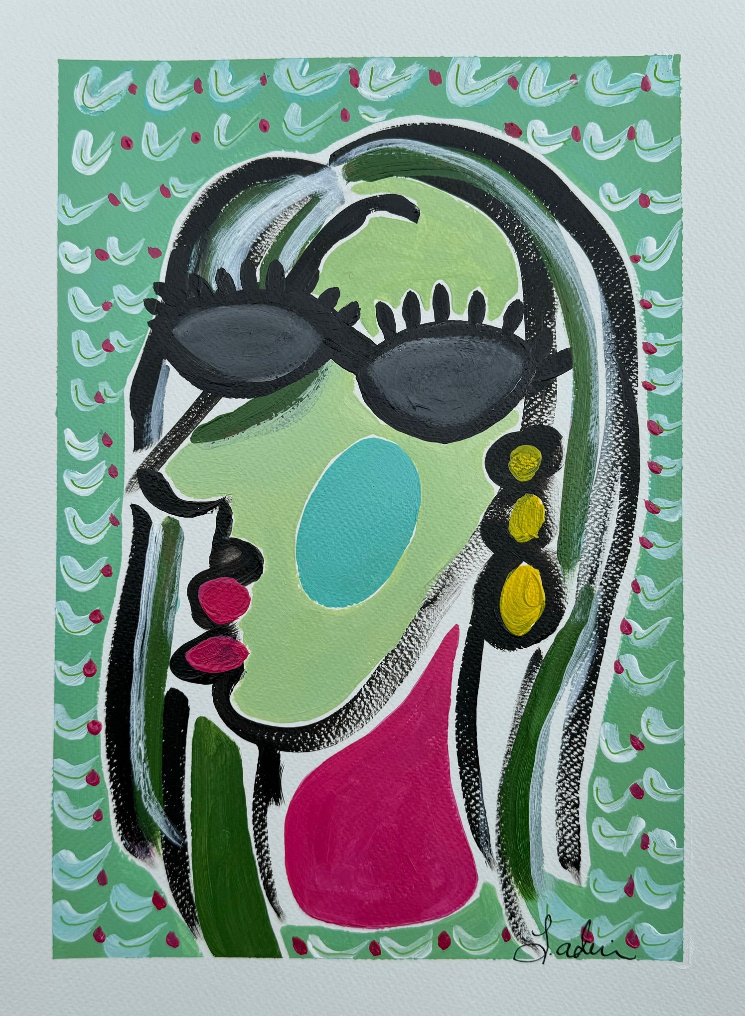11x15 abstract face in acrylic on Italian Fabriano cold pressed watercolor paper.